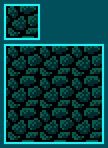 我想使岩石给人以古老的黑暗的感觉。但是并不如此,是不是哪出了问题?我使用了三个不同明度的绿色,并用明度最低的绿色填充背景。这样做没有带来预期的效果,反而看起来有点平……哪出了错么?在以前的游戏中,颜色数受限制,黑色被经常使用。黑色是一个关键的颜色。使用黑色可以反衬其他颜色,使之突出画面。如果你知道如何使用黑色,它将是一个很好的工具。举例子说在白色的纸上画画,人们用的最多的就是铅笔,而铅笔是黑色的。除了互补色,还有明度对比、纯度对比等等,所有这些基础的色彩知识在你画像素的时候都可以给你帮助。所以在这里我把背景色换成黑色并且把其他的绿色各降低一个明度。现在看看效果: