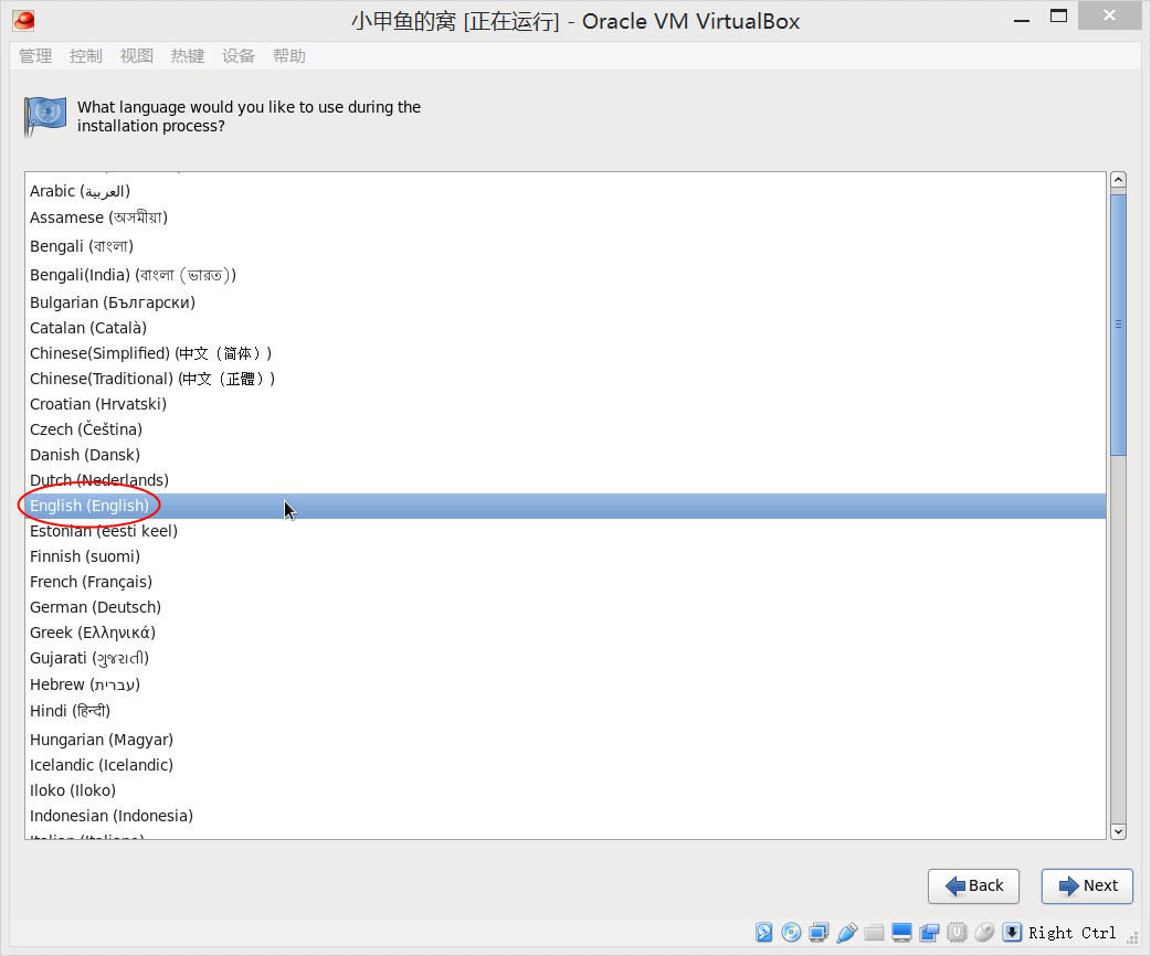 16. 无论你懂不懂英语,请在语言那里选择 English,因为我们只安装命令行模式(用不了中文):