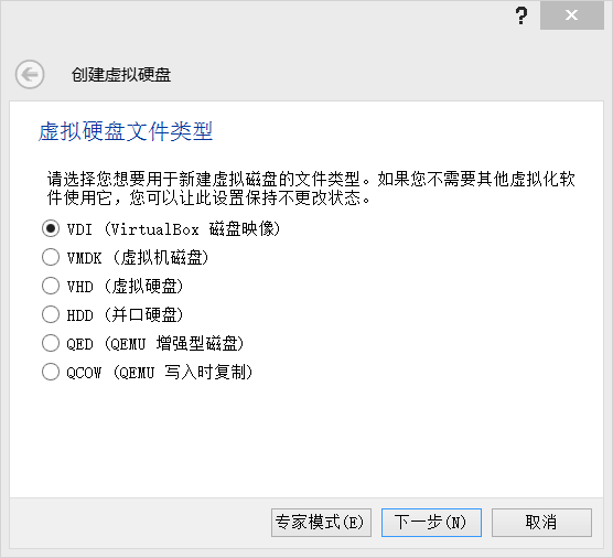 5. 选择 VDI(Virtual Box 磁盘映像):