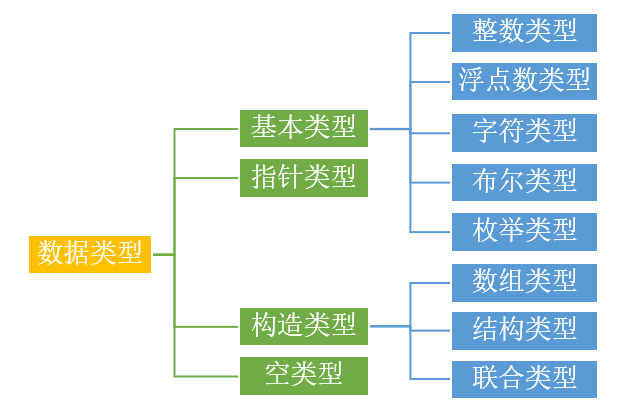 在 C 语言里,所谓的数据类型就是坑的大小。我们说变量就是在内存里边挖一个坑,然后给这个坑命名。那么数据类型指的就是这个坑的尺寸。C 语言允许使用的类型如下: