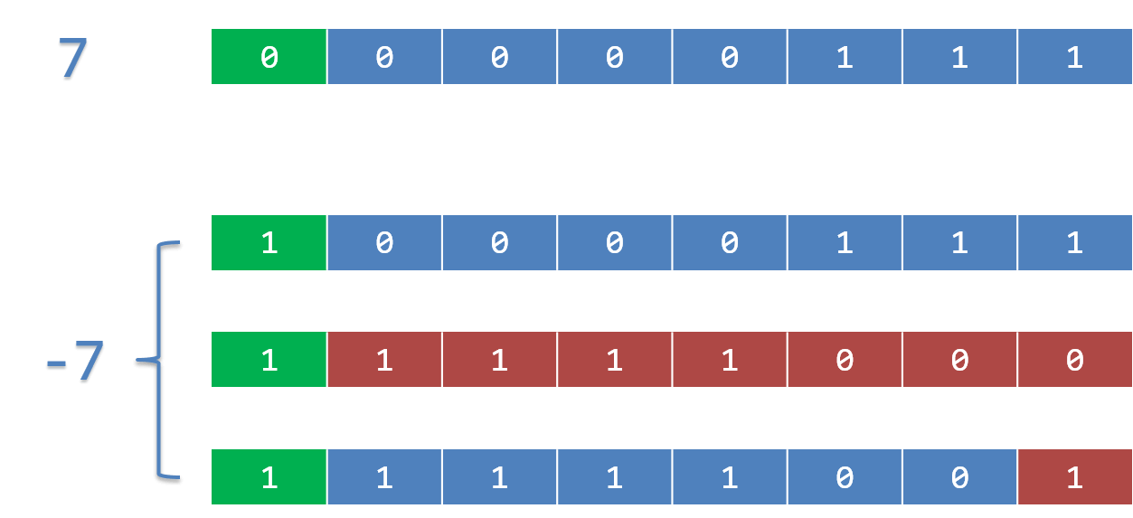 存放 signed 类型的存储单元中,左边第一位表示符号位。如果该位为 0,表示该整数是一个正数;如果该位为 1,表示该整数是一个负数。