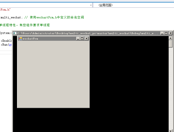 Application::Run(gcnew mwechatFrm()); //创建一个窗体,并进入消息循环
