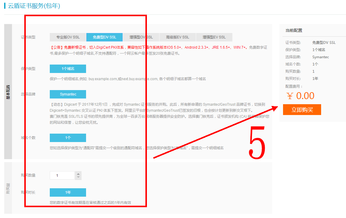 到阿里云申请免费的CA证书,废话不多说,直接看图: