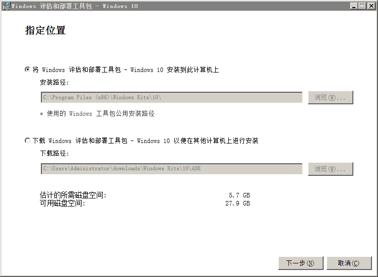步骤二:安装 Windows ADK(这一步需要联网下载,文件有几G,需要点时间)