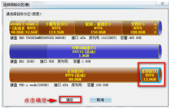 弹出的选框我们点击刚刚分出的UD维护盘尾部分区