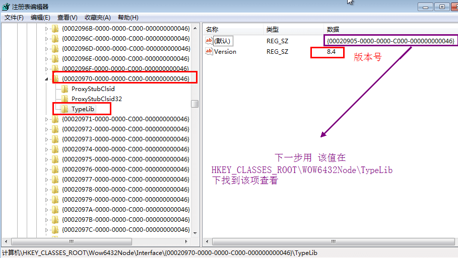 2.用key在HKEY_CLASSES_ROOT\WOW6432Node\TypeLib\00020905-0000-0000-C000-000000000046查看信息