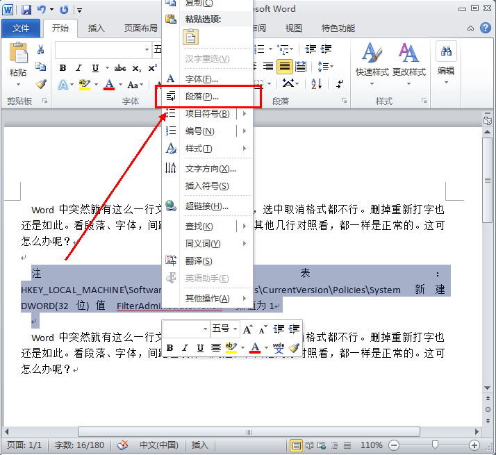 选中间距无法修改的那段文字 -> 右键单击 -> 点击【段落】。