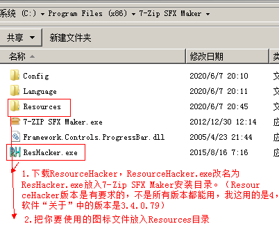 二、 把 ResourceHacker.exe 改名为 ResHacker.exe 复制到 7-Zip SFX Maker安装目录。