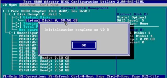12、确认后可以看到初始化的进度,等待初始化进行为100%,虚拟磁盘的配置完成。