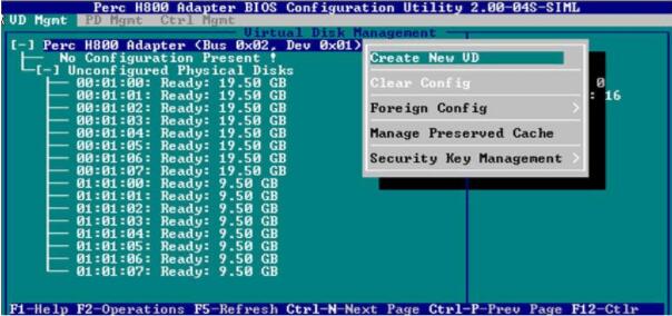2、在虚拟磁盘创建窗口,按回车键选择“Create New VD”创建新虚拟磁盘