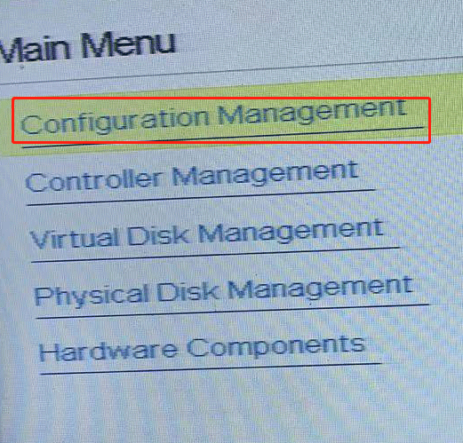 1. 回到阵列设置主界面 选择"Configuration Management"