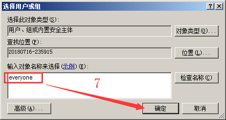 -> 输入用户“everyone”,点“确定”。