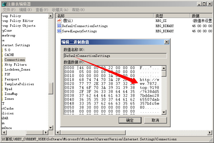 把里面的 DefaultConnectionSettings 和 SavedLegacySettings 全部删除,然后再使用注册表的查找功能,找到所有匹配 “www.7872.top” 的项 全部删除。
