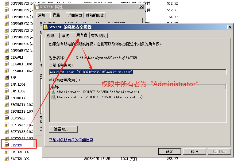 3. 文件安全权限中所有者为“Administrator”默认应该是“SYSTEM”,是不是有哪个软件对文件进行过权限修改操作,导致文件头部有些数据不规范?