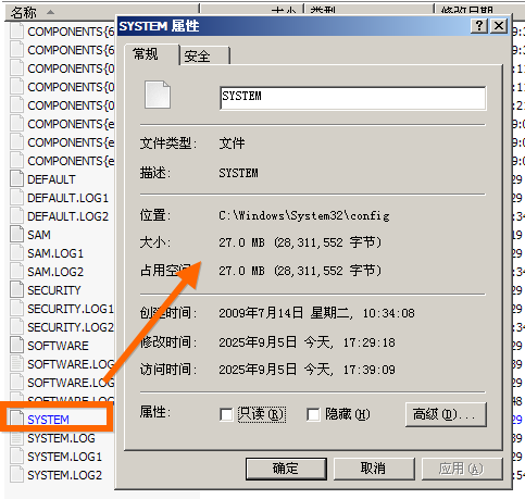 各系统中“C:\Windows\System32\Config\SYSTEM”文件症状。