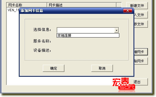 导入文件后 我们发现里面有许多网卡信息 删除不要的然后点新增网卡 在选择信息处选择本地连接