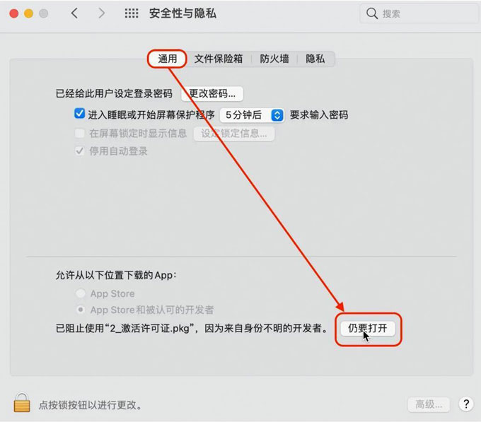 2.遇到无法打开的问题:通常会提示无法打开,这时你需要在macOS的系统设置里允许运行不受信任的软件包。 。