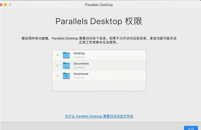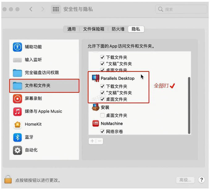 勾选Parallels Desktop下面的所有选项,确保它能够正常访问文件。