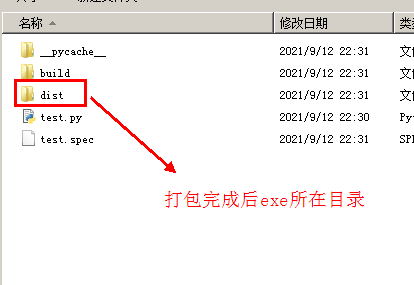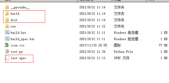 执行完成后会在test.py生成一些目录和文件,exe文件在dist目录中: