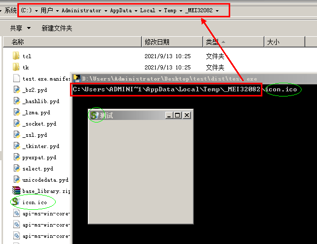 命令:pyinstaller -F --add-data=icon.ico;. test.py