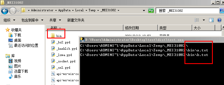 命令:pyinstaller -F test.py --add-data=bin;bin