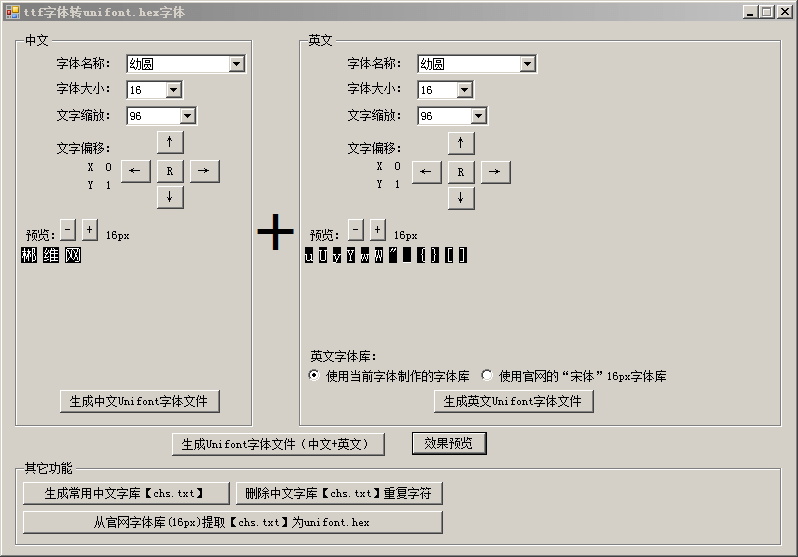 前段时间在更新本人“郴维电脑装机维护工具”(U盘启动制作工具)时,用上了之前写的“Grldr内置菜单编辑器”,但是缺少了Windows系统字体转Unifont字体的功能,看别人程序都有这个功能,于是秉着自己能搞得出的东西就自己搞,没必要用别人的(并不是用得上,单纯就是好奇想做出来)。
