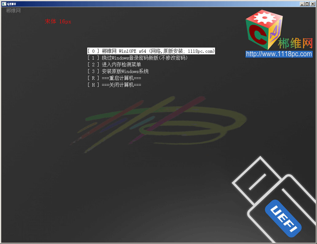使用Unifont字体的案例,接触最多的应该就是U盘启动制作工具,市面上的U盘启动制作工具基本上都是使用GRUB4DOS制作,而GRUB4DOS使用的就是Unifont字体。