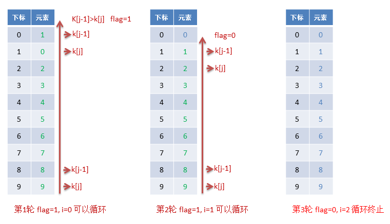 优化原理是对已经有序的序列减少循环次数和大小判断次数。如图:
