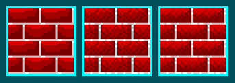 首先我请你观察第二个图块,亮的砖块,有第三个颜色……白色,被用来表现高光。在下一个图块,你可以发现他更暗,这是因为在图块底部有更多的黑色,而在上面亮灰取代了白色。这里没有更深的灰色,而只是改变了像素的分布。