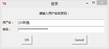 passwordbox() 跟 enterbox() 样式一样,不同的是用户输入的内容用"*"显示出来,返回用户输入的字符串: