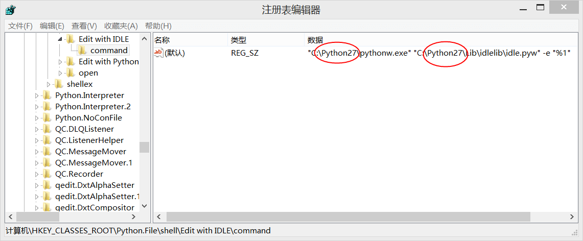 2. 找到项[HKEY_CLASSES_ROOT\Python.File\shell\Edit with IDLE\command]