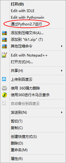 当我的脚本需要使用 Python2.7 时,则通过鼠标右键选择执行。