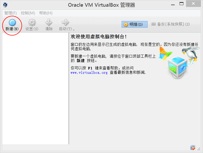 1. 打开虚拟机,点击“新建”: