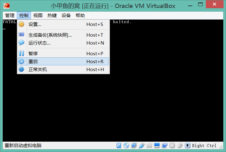 12. 点击“控制”->“重启”: