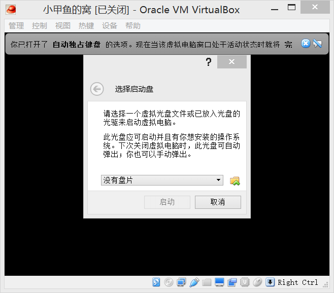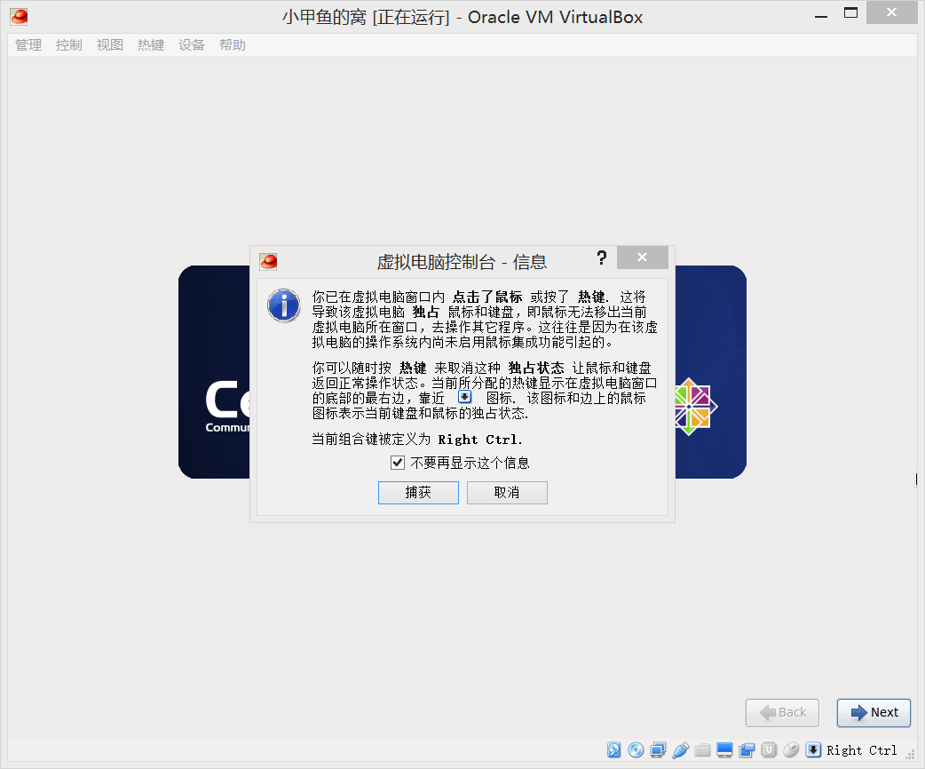 15. 注意,当你的鼠标在虚拟机中点击后,鼠标位置将被虚拟机捕获并控制。