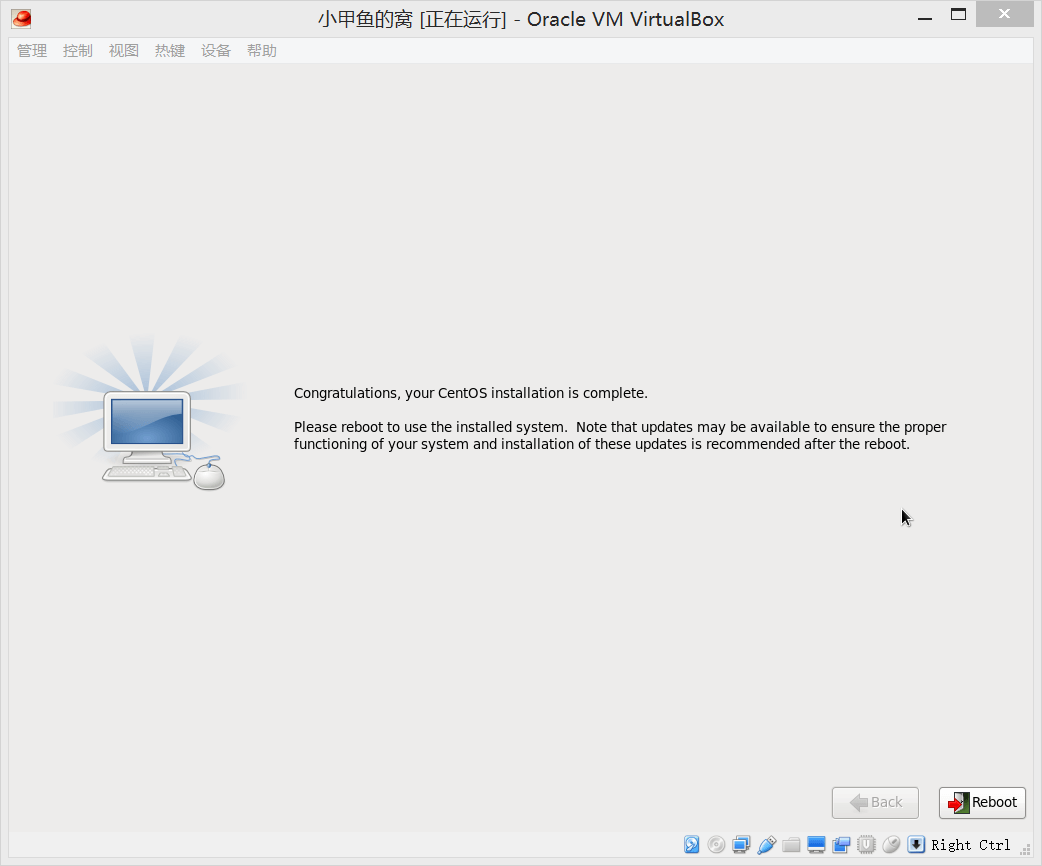 成功安装后要求重启(Reboot):