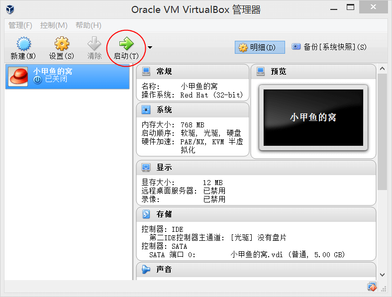 8. 大功告成!接下来我们要将下载好的 CentOS 系统安装到虚拟机上,点击启动: