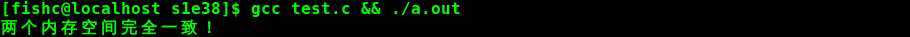 printf("两个内存空间完全一致!\n");