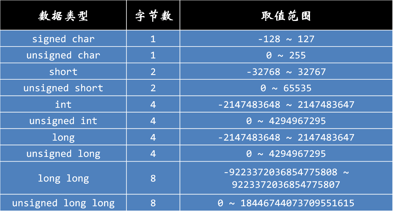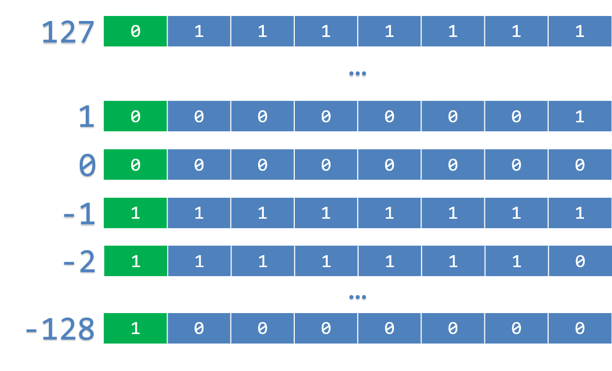 存放 signed 类型的存储单元中,左边第一位表示符号位。如果该位为 0,表示该整数是一个正数;如果该位为 1,表示该整数是一个负数。