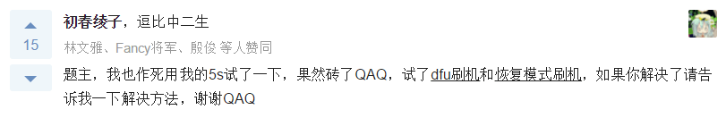 “可以确认这个解决方案。我们天才吧的团队试了几下,发现卸掉电池,再连接上,就能恢复手机。