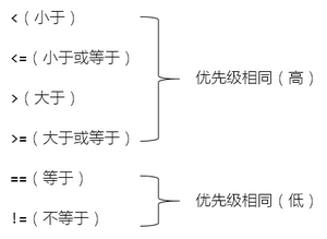 关系运算符都是双目运算符,其结合性均为左到右。另外,关系运算符的优先级低于算术运算符,高于赋值运算符。