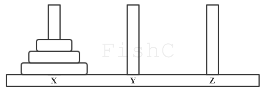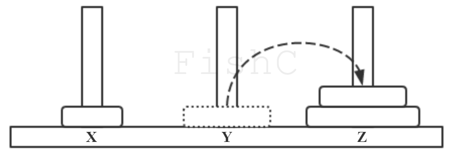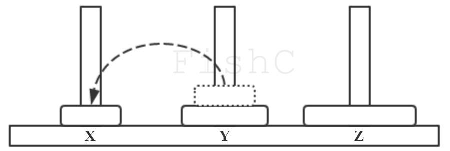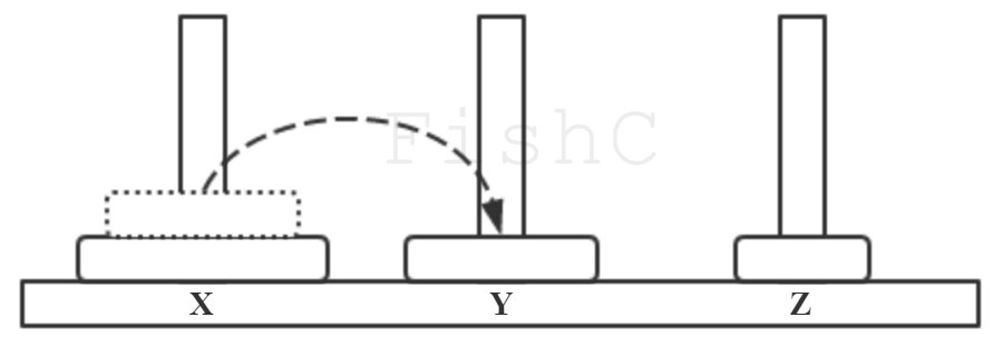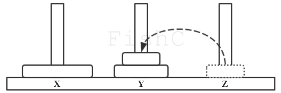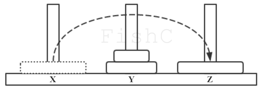 hanoi(n-1, x, z, y); // 将n-1个圆盘从x移动到y