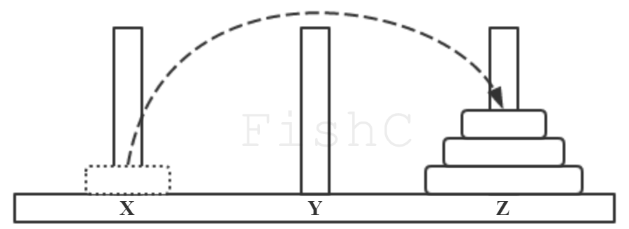 3. 将 Y 上的 63 个盘子移动到 Z 上。