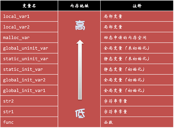 不过这两者都需要区分是否已经初始化,已经初始化的放一块,未初始化的放一块,并且未初始化的地址要比已经初始化的要更高一些。接着下来是字符串常量,最后是函数的地址。