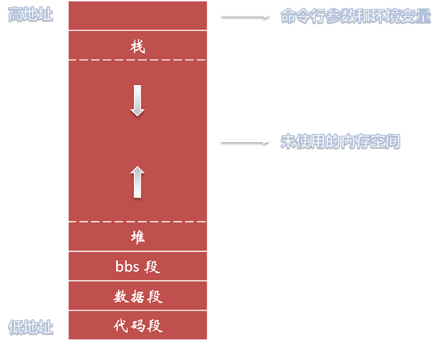 · 堆和其它区段一样,都是从低地址向高地址发展
