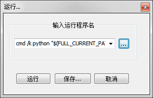 现有如下方法使用 Notepad++ 运行 Python 脚本,F5 或 点击 运行(Run)- 运行(Run) 弹出Run的窗口如图: