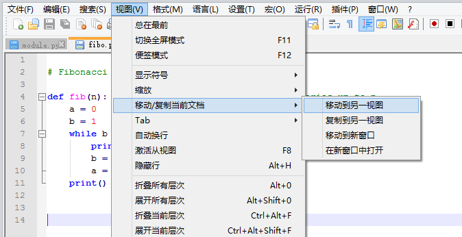 备注:Notepad++ 中可分视图查看,选择移动到另一视图,查看下方截图