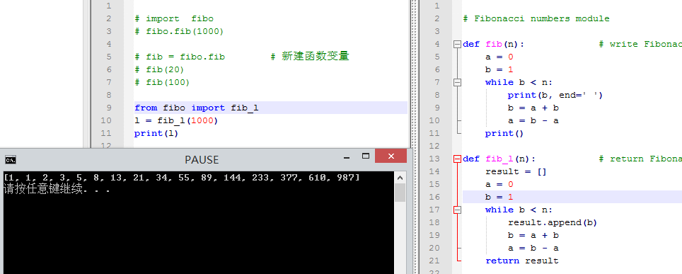 通过 from fibo import fib_l 导入 fibo 中的指定部分 fib_l,这样不会导入模块名 fibo