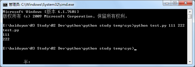 cmd 下运行命令如 python test.py 111 222