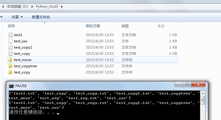 shutil.move("test_org.txt","test_move") # 将文件 move 至 目标文件夹中